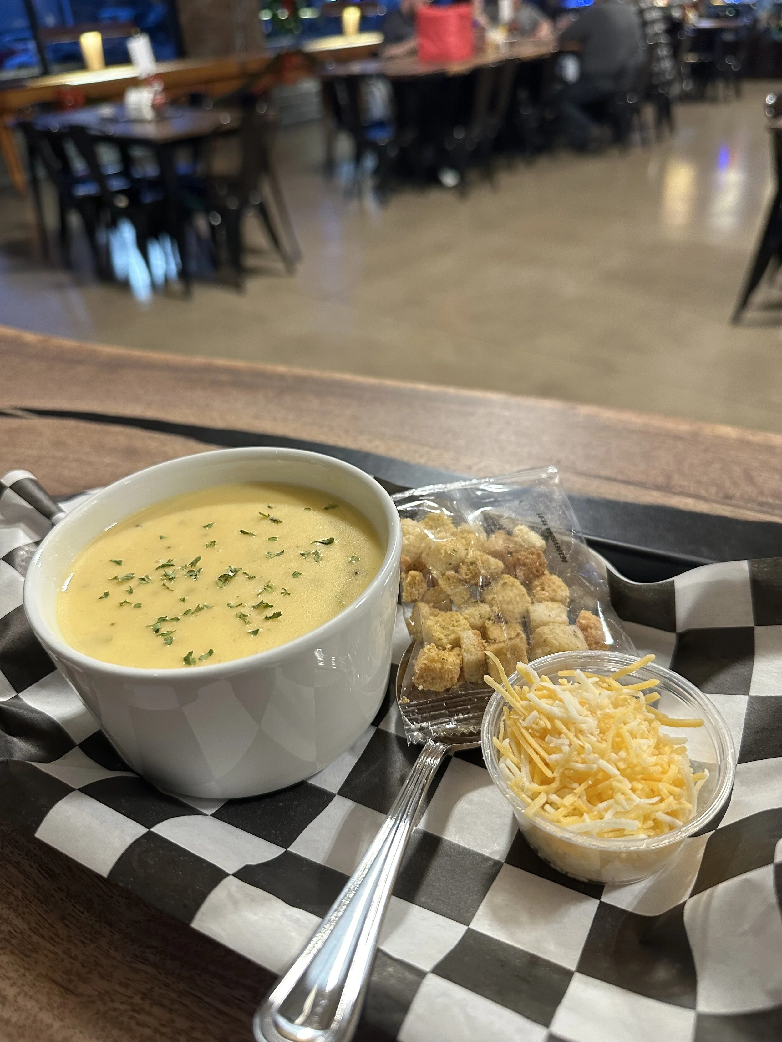 Enjoy our rotating soup special - a warm, seasonal pick that changes throughout the month. Upgrade to a bowl for a dollar more!—$4